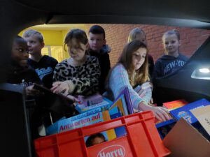 Die Stephanusschule wird vorzeitig beschenkt. Am Mittwoch morgen fuhr Herr Moor mit dem Bücherbus der anderen Art an der Schule vor. Dieser war beladen mit Buchspenden des SPD-Trödels und einige Kinder der 4b durften um die 50 Bücher für die Klassen und die OGS aussuchen. Voll beladen mit neuen Büchern bedanken sich die Kinder und die Schule für die tollen Lektüren!