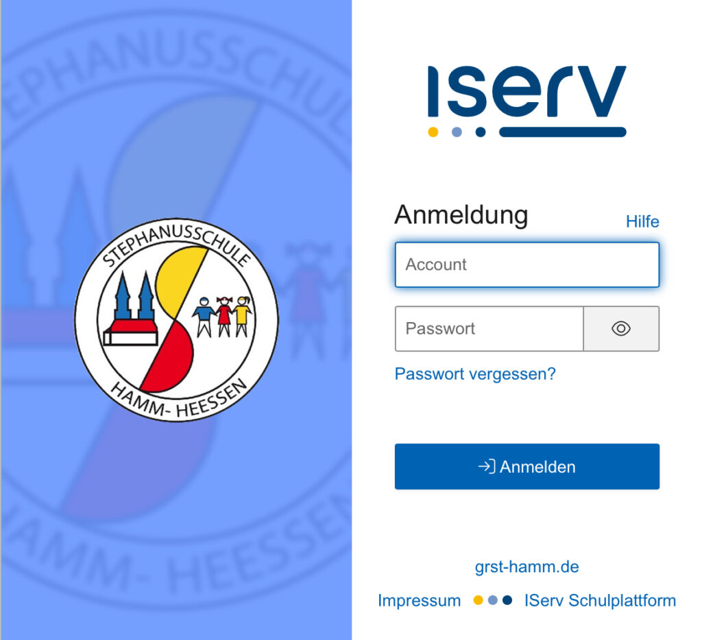Der Zugriff auf IServ erfolgt über eine kostenfreie App auf dem Smartphone oder Tablet über die o.g. E-Mail-Adresse oder am PC im Browser über die URL grst-hamm.de